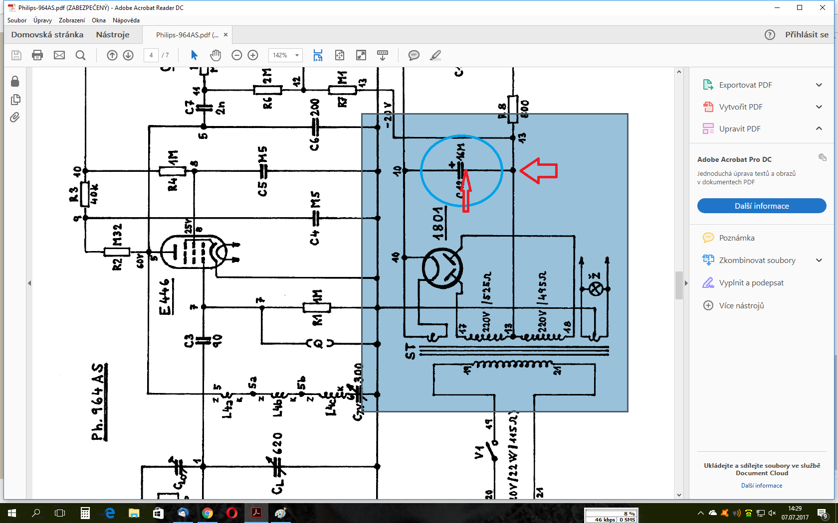 Do zásuvky jsem to ještě nedával. Jinak trafo mám proměřený to je v pořádku. Heptoda tohle schéma mám taky. Je to přímo on ten kondenzátor. Musím to šasí vydělat z té bedýnky a podívat se ještě pod ten kondenzátor jestli tam ještě něco není připájený k němu. Ale poprvé jek jsem to zkoušel měřit tak to vycházelo ted už ne.
