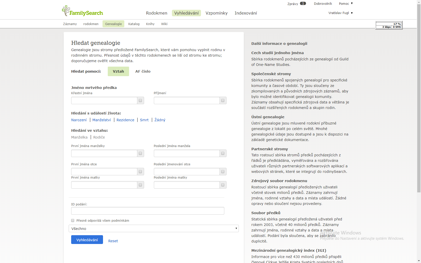 Pak jsem začal zadávat , co bylo na papírech po šuplících a v její paměti (zatím tam máme něco kolem 320 osob...
