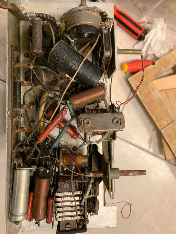 Zajímavá věc. Držím palce, ať se povede renovaci dotáhnout do konce. Šasi vypadá celkem dobře. Ta elektronka Valvo je samozřejmě AF7, ne AP7. Koncová lampa bude skoro určitě AL4.