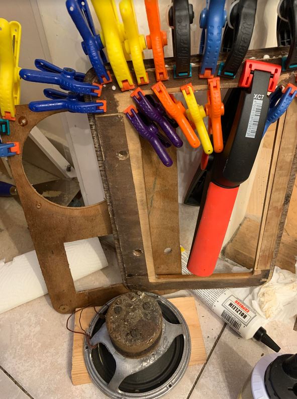 Skříňka poškozena vlhkostí, rozpadla se, ale podařilo se ji rozmontovat