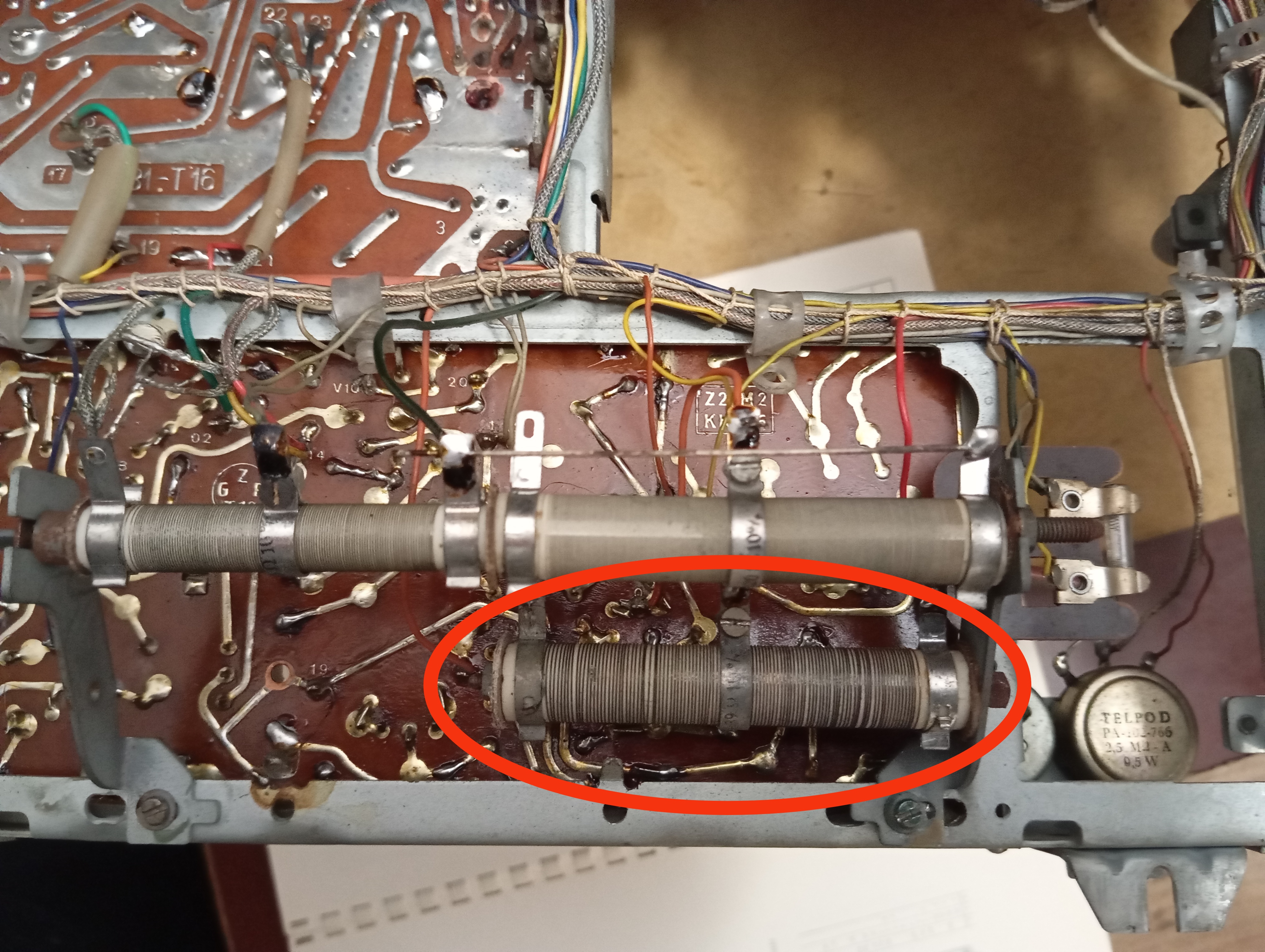 Konstrukční nedostatek je odpor ve zdroji R430. Jednak kvůli tomu, že je holý netmelený a kvůli velkému zatížení dost hřeje, odporový drát se prodlužuje a tím se uvolňují zavity na keramickým tělísku. pokud změní polohu, snadno se může po vychladnutí přerušit. Další problém je samotné umístění odporu poblíž vychylovaček. Střídavé impulzní napětí s z odporu indukuje do vychylovaček, což se projeví pruhem který cestuje po obrazovce. V té upravené Lilii jsem ho přemístil a nahradil tmeleným, čímž jsem odstranil oba nedostatky.