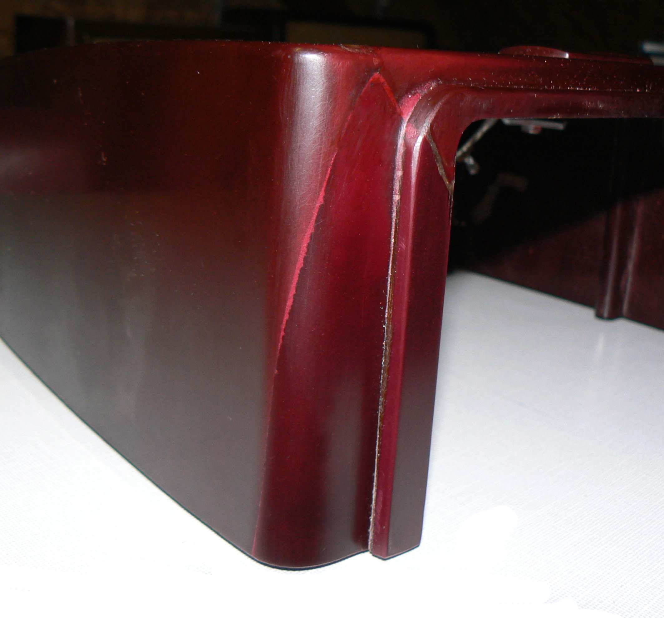 Dobrý den, jak i sám říkáte, při lepení s černou bakelitovou skříňkou obvykle nejsou velké problémy i když je potřeba nějaké ty chybějící části doplnit tak že ve výsledku je lepení téměř neviditelné. U zabarvených do červena není až takový problém třeba najít nějakou nepotřebnou různě poničenou skříňku i z jakéhokoliv jiného typu rádia coby zdroj materiálu, ale spíš najít alespoň trochu přibližnou barevnou strukturu. Další problém je, že s případným dobroušením dolepeného kousku do přesné roviny se barevná struktura bakelitu mění a to čím hlouběji, tím je bakelit světlejší. To je problém i u celých skříní které jsou delší dobu třeba jen popraskané a bakelit mechanicky již přesně nesedí. Po slepení je většinou potřeba k dokonalému srovnání patříčné mírné nerovností v místě slepu lehké přebroušení. Výsledek je takový rozporuplný, na hmat je místo slepu absolutně přesné ale na pohled je zase více viditelný barevný nesoulad. Špatně se také opravují popraskané a již jednou lepené bakelitové části. Většinou je to zcela zapatlané nevhodným lepidlem, které ale již nejde úplně z lepených ploch odstranit a tak také není možné tyto plochy zpětně přesně napasovat. Nejlepší na opravu je čerstvá prasklina nebo prasklý díl na který ještě nikdo nešáhnul, to lze slepit tak, že si po pravě toho nikdo ani nevšimne.